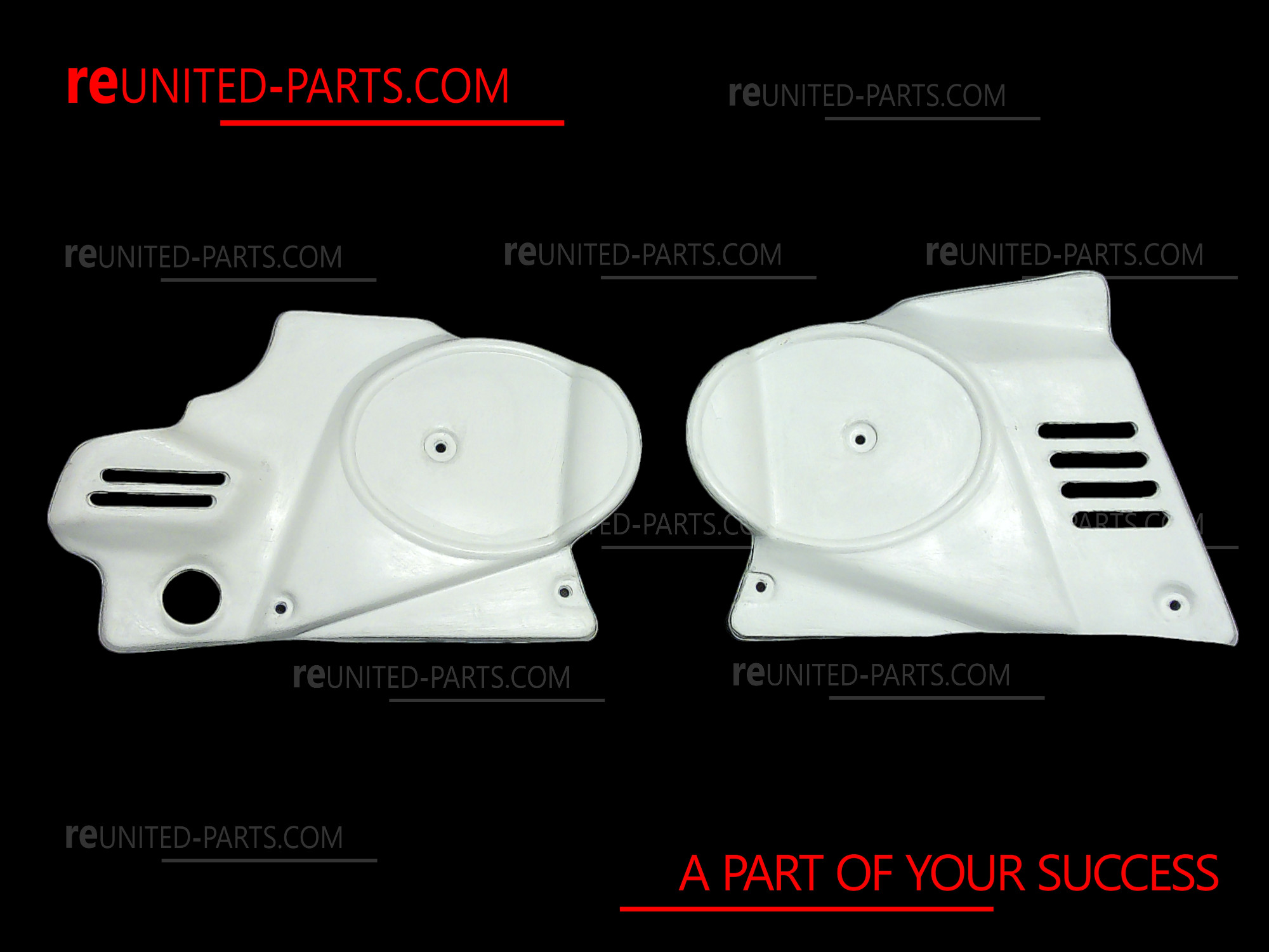 Seitendeckel links und rechts, Satz, weiss, neu, Puch M50 Mini Cross