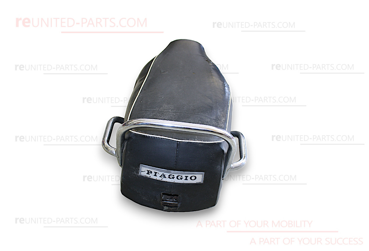 Sitzbank - schwarz, mit Federkern, Sitzbezughülle und Haltegriff für den Beifahrer, passend für Vespa/Piaggio PX 80-200 alt